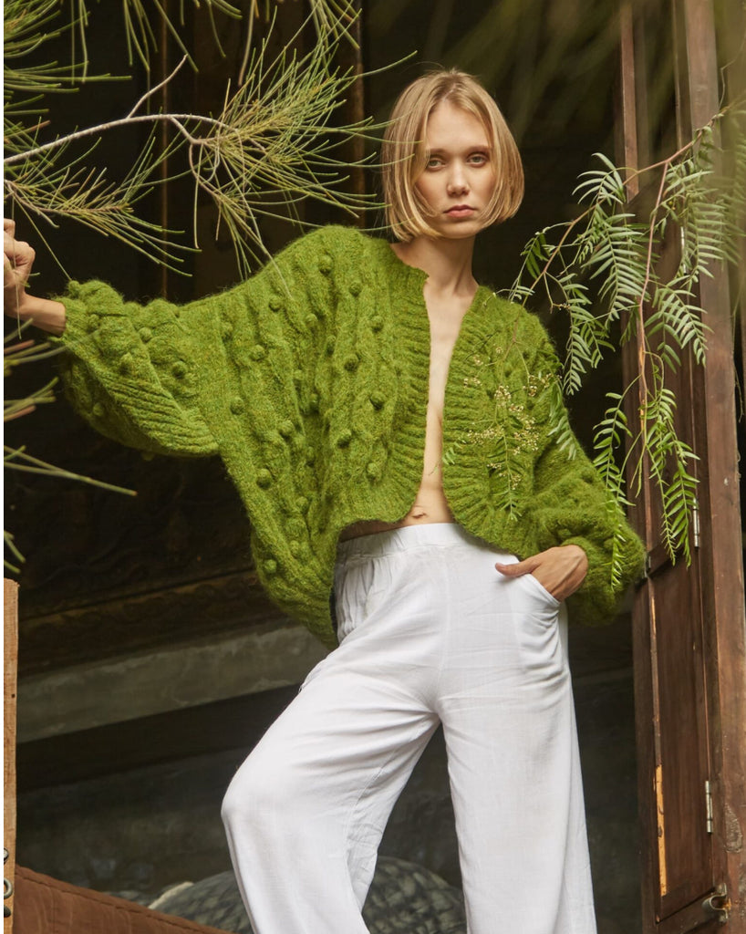 Alpaca Oversized Cardigan - CD in Grass Green by MIA Peru